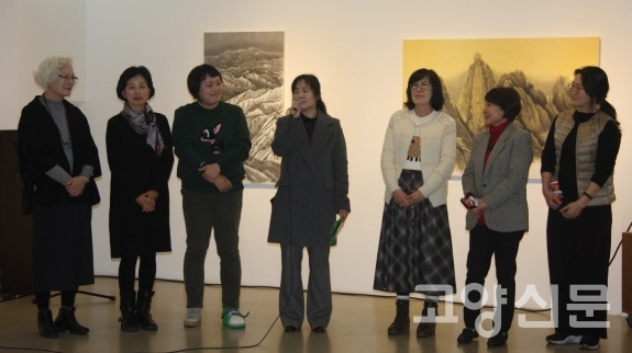 [고양신문] 그림동호회 화예헌회(畵藝軒會)의 ‘긴 소리전’ 오프닝 행사가 28일 고양어울림누리 어울림미술관에서 열렸다. 화예헌회는 고양문화재단 아카데미에 소속된 허영 화가와 제자들로 구성된 모임이다. 이번 전시에는 30여 명의 회원 중 7명이 한국화의 아름다움을 보여주고자 모였다.
