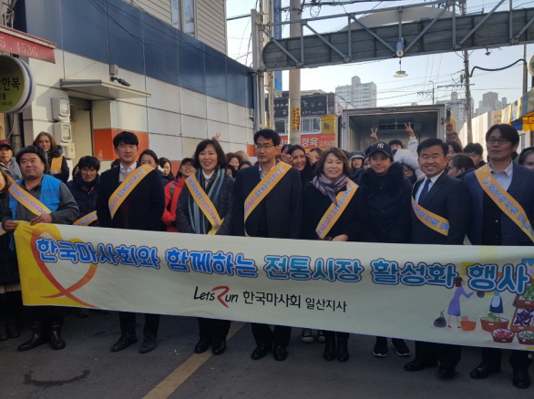 한국마사회 일산지사(지사장 김호균)가 지역단체와 함께 하는 전통시장 장보기 활동을 가졌다. 11월 29일 고양시다문화가족지원센터(센터장 임유진), 고양지역자활센터 등 2개 단체에서 추천한 지역의 차상위계층과 다문화가족 200가구가 일산시장에서 전통시장 장보기를 가졌다. 가구당 10만원씩 총 2,000만원의 온누리상품권을 후원하고 수혜대상자와 양 단체 관계자, 센터 직원 등 100여명이 함께 참여해 전통시장인 일산시장에서 장보기 행사를 했다. 이날 행사에 참여하지 못한 저소득가정에는 물품으로 배달해준다.