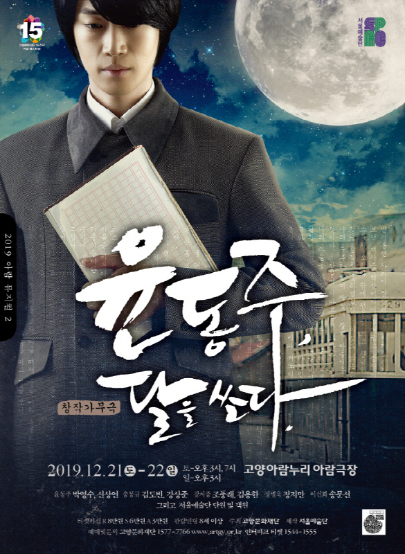 [고양신문] 일제강점기의 엄혹한 시대를 살면서도 맑은 영혼으로 하늘과 별을 바라보았던 국민 시인 윤동주의 삶이 무대에서 되살아난다. 고양문화재단(대표이사 정재왈)은 서울예술단의 대표적 창작가무극 ‘윤동주, 달을 쏘다’를 12월 21일(토)과 22일(일) 고양아람누리 아람극장에서 공연한다.