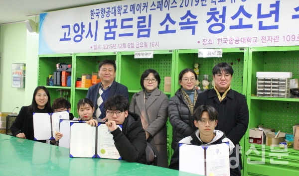 지난 6일에는 고양시청소년상담복지센터 소속 청소년들의 교육 수료식이 진행됐다. 참가자들은 올해 4월부터 코딩 기초교육을 시작으로 드론 기본교육, 그리고 3D모델링 및 프린팅 교육을 차례로 이수하고 이날 자랑스런 수료장을 받아들었다. 한 참가자는 “드론과 코딩 교육이 너무 흥미진진했다. 컴퓨터공학과에 진학하고 싶다는 꿈이 생겼다”고 말했다. 청소년들을 인솔한 안아라 청소년상담복지센터 꿈드림 담당교사는 “시설도, 강사진도, 교육내용도 모두 만족스러웠다. 이렇게 좋은 교육 기회를 제공해주신 항공대 메이커사업지원센터에 감사드린다”고 말했다.