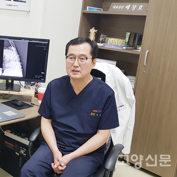 배장호 자인메디병원 대표원장을 만나 목디스크의 원인과 진단 및 치료법 그리고 이를 예방하기 위한 방법에 대해 들어봤다.