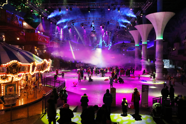 영화 미션 OST에 가사를 덧입힌 넬라판타지를 배경으로 하루 3차례(11시∙14시∙17시) 연출한다. 번개쇼 등은 영화 겨울왕국2 ‘인투디언노운(Into the Unknown)’에 맞춰 2차례(13시∙16시) 공연한다. 설산의 벽화가 둘러싼 가운데 화려한 조명과 함께 펼쳐지는 레이저쇼는 자연히 환상적인 포토존이 된다. 이국적인 풍경을 보고 있노라면 북유럽의 작은 마을로 잠시 시공을 뛰어넘어온 듯한 판타지를 느끼게 된다.