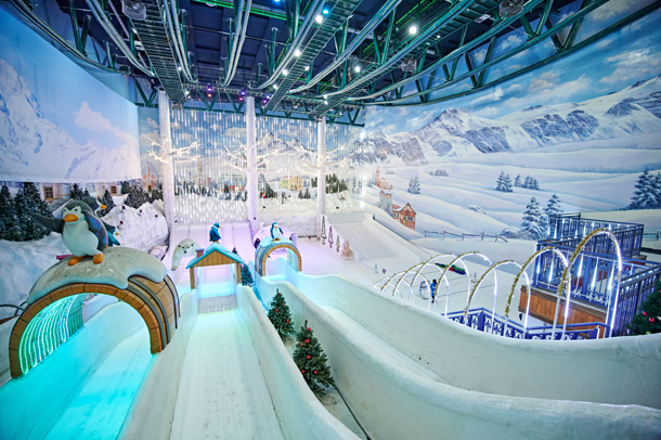 실내에서 얼음 썰매를 탈 수 있는 얼음언덕 ‘스노우힐’도 올해 새롭게 리뉴얼을 마쳤다. 높은 층고의 거대한 벽면이 흰 눈을 형상화한 조명으로 가득 채워져 규모감이 느껴진다. 신규 힐 썰매 어트랙션인 ‘토들러슬레지’를 도입해 키 120cm 이하의 유아들을 위한 썰매장을 추가로 운영한다.