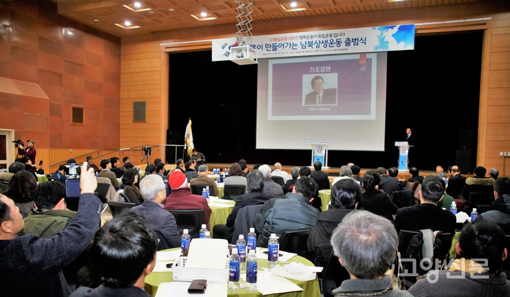 3‧1운동의 독립정신을 통일로 이어가기 위해 결성된 ‘고양시민 100인 추진위원회’는 20일 남북상생운동 출범식을 개최했다. 이날 행사에는 박원순 서울시장, 심상정 국회의원을 비롯해 이재준 고양시장, 이윤승 고양시의회 의장 등과 지역 종교인, 시민단체 회원들 200여 명이 참석했다.