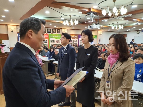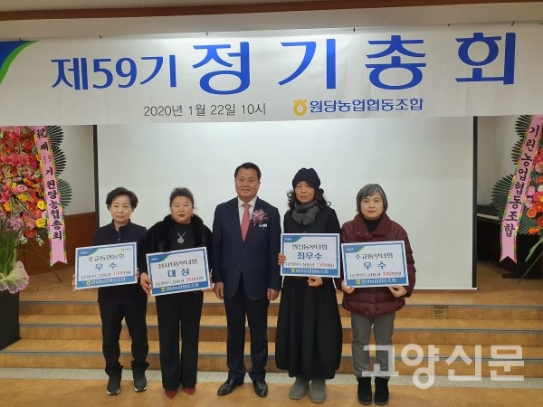 이날 총회에 앞서 표창장 수여가 있었는데 ▲천경자 과장 농협중앙회장상 ▲남숙현 과장 농협중앙회 경기지역본부장상 ▲박정식 과장 조합장상 ▲이재춘·한명선 과장 농협중앙회 고양시지부장상을 각각 받았다.