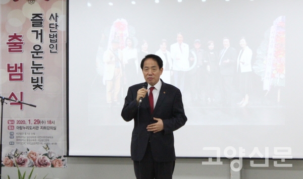 즐거운 눈빛의 멘토 역할을 하고 있는 허형만 상임고문(시인, 목포대 국문과 명예교수)은 “4년 전 고양시로 이사 온 후 늘 즐거운 눈빛과 함께 했다. 사단법인 출범을 계기로 회원들과 후원인들이 더욱 화합하고 단결되기를 희망한다”며 축하 메시지를 전했다.