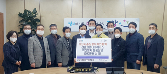 나눔에 참여한 정세창 고양시충청향우회장은 “향우회 회원들이 코로나19 감염 확산 방지에 조금이나마 도움을 드리고 싶은 마음에 기부를 하게 되었다. 앞으로도 충청향우회는 지역사회를 위해 적극적인 사회공헌활동을 펼쳐 나가겠다”고 말했다.