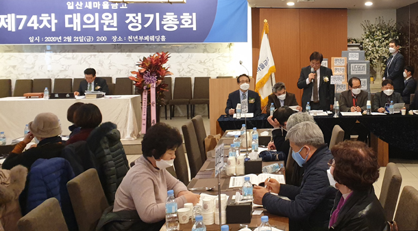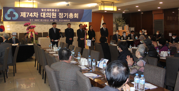 1976년 창립한 일산새마을금고가 지난 21일 오후 2시 백석동 천년부페웨딩홀에서 대의원과 이사, 선거관리위원, 회원 등이 참석해 제74차 대의원 정기총회를 가졌다. 이날 정기총회에서는 우수회원 7명에게 표창장으로 새마을금고중앙회장상과 일산새마을금고 이사장상이 전달됐다.