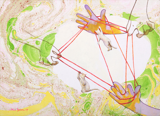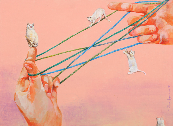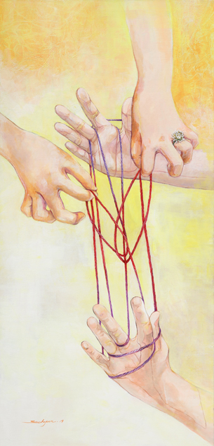 “나에게 그림은 세상의 아름다움을 간직하려는 활동이었다. 육아와 그림 활동을 병행하면서, 다양한 사연과 모습을 지닌 사람들을 만나게 되었다. 그 과정에서 아름다움은 눈앞에 보이는 것만이 아니라는 평범한 사실을 알게 되었다. 그 사실을 실뜨기라는 손과 손의 관계에 녹였다”라며 전시회의 속살을 미리 보여줬다.