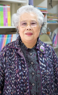 봄바람을 쐬며 차곡차곡 쌓이는 책 앞에서 멋지게 차려입은 어르신이 책을 바라보고 있었다. 10여 년 동안 단지 이곳저곳을 다니며 책을 모아온 맹효영(여·87세) 어르신이다.