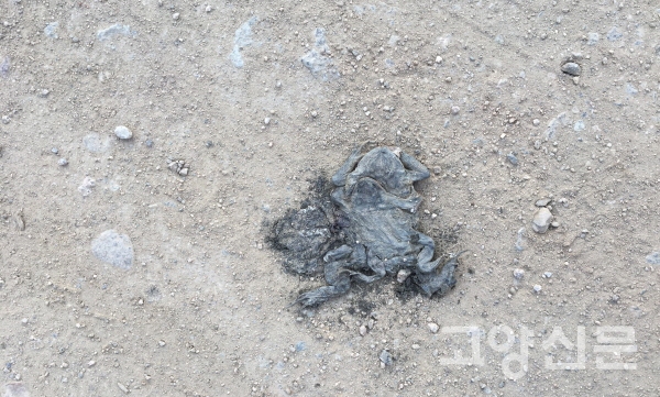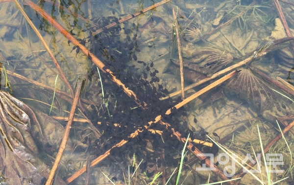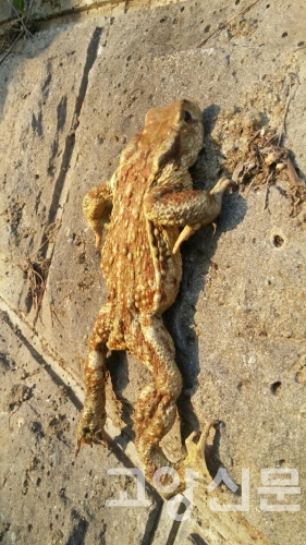 [고양신문] 두꺼비는 마을동물이다. 옛사람들이 ‘떡두꺼비같은 아들’ 낳기를 바랬던 이유를 미루어 짐작컨대 몸이 시루떡같이 넓적한 암컷이 작은 수컷을 애기같이 업고 오는 모습을 보며 그랬을 게다. 사람들에게 친근했던 마을동물 두꺼비들은 그러나 마을습지가 사라지면 더 이상 우리곁에 머물지 못한다. 고양시를 통틀어 두꺼비 짝짓기터는 사유지로 남은 행신동습지 한 곳이 유일하다. 고양시에 두꺼비 짝짓기터가 얼마나 있었는지 알 길이 없지만 신도시 개발이후 살이터인 텃밭과 마을숲, 짝짓기터인 마을습지가 온전하게 연결되어 남아있는 곳은 이곳밖에 없기 때문이리라. 그나마 다행이기도 하지만 문제는 이곳이 사유지라 언제 사라질지 모른다는 것이다. 산란시기에 맞추어 시와 시민단체가 보전 조치를 취하려하지만 지하수를 끌어올려 물이 대는 것 외에는 달리 묘수가 없다. 토지가격이 높아 공공용으로 매입하기도 쉽지 않고 서울문산도로와 창릉신도시 예정까지 개발압력이 높은 곳이기 때문이다.