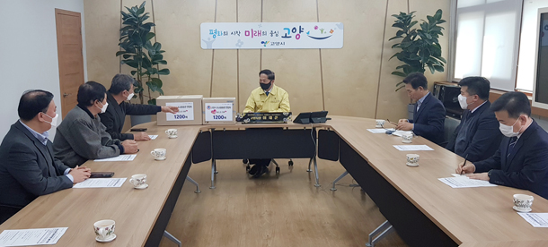 고양시초등학교총동문연합회(회장 이흥식·이하 고초연)가 코로나19 감염예방과 확산방지를 위해 고양시에 마스크 1200매를 전달했다. 지난 3월 23일(월) 오후 3시 고양시청 열린회의실에서는 이재준 고양시장과 이흥식 회장, 이창원 고양시사회복지협의회장과 고초연회원 등 10여명이 참석해 전달식을 가졌다. 이날 전달된 마스크는 고양시사회복지협의회를 통해 방역물품 구입에 어려움을 겪는 저소득 가정에 지원 될 예정이다.
