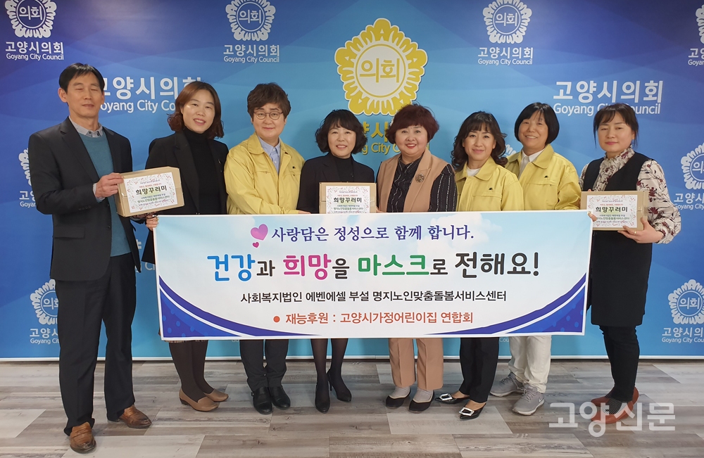 제작된 면마스크는 올해 1월부터 시행되고 있는 노인맞춤돌봄서비스 사업 수행기관인 사회복지법인 에벤에셀 부설 명지맞춤돌봄센터에 전달됐고, 명지맞춤돌봄센터는 다시 지역사회 어르신들에게 마스크를 전달하게 된다. 전달식은 지난 1일 고양시의회에서 진행됐다.
