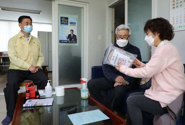일산2동 주민자치위원들이 한땀 한땀 만든 면 마스크를 관내 경로당에 전달했다. 지난 6일 조태순 주민자치위원장과 김진구 일산2동장, 김민정 복지팀장은 15개 경로당을 직접 방문해 마스크를 전달하고 친절하게 사용설명을 안내했다. 이날 일산2동 주민자치위원회가 만들어 전달한 면 마스크는 총 300여개로 필터 교환용으로 제작됐다.