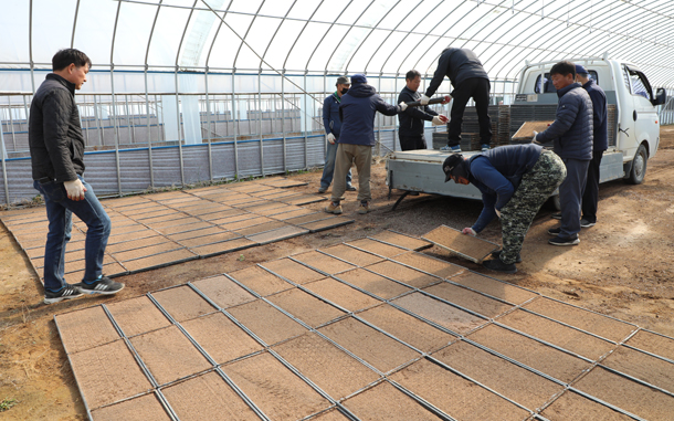 이날 담은 모판은 조생종 ‘진광’으로 총 5천 장으로 5월 초 송포농협 조합원 등에게 공급한다. 8일 전날부터 농촌지도자회원들은 기계 세팅에서부터 모판·볍씨 준비 등의 모든 걸 점검했다. 9일 아침 일찍부터는 여러 농민단체와 관공서에서 나와 십시일반 도움을 모판을 날랐다.
