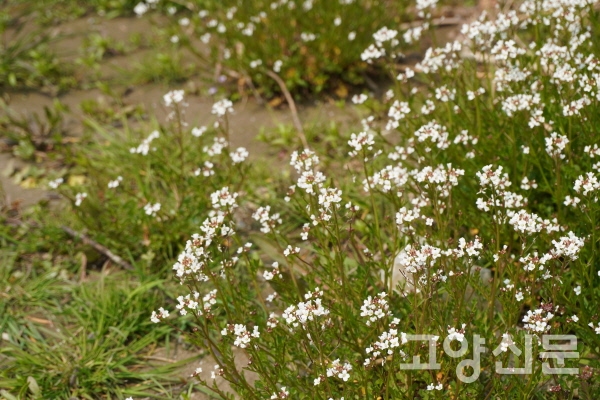 지면에는 작은 풀꽃들이 경쟁하듯 만개했다. 흰색과 연노랑, 연분홍, 연보라…. 크기도 색깔도 작고 소박한 꽃들이지만 들여다볼수록 예쁘고 정겹다. 잉어다리 근처에서 만난 한 아주머니가 허리를 굽히고 뭔가를 채취하고 있다. 이맘때가 가장 부드럽고 향기롭다는 물쑥이란다. 연초록색 봄나물 향이 물씬하다.