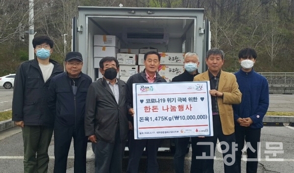 [고양신문] 대한한돈협회 고양시지부(지부장 김성수)가 17일 코로나19 확산으로 어려움을 겪고 있는 소외계층을 돕기 위해 한돈육 1475kg을 고양시에 기탁했다. 전달된 분량은 시가 1000만원에 상당한다. 고양시는 전달받은 한돈육을 경기북부사랑의열매를 통해 관내 21개 사회복지기관에 전달할 예정이다.