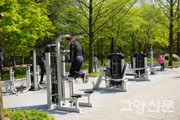 주엽공원 체력단련장에서 만난 C씨(60대)는 “주엽공원 운동기구가 가장 좋다”고 말한다. 다시 보니 일반적인 공원 운동기구보다 한층 고급 사양의 체력단련 기구들이 다양하게 구색을 갖췄다. 코로나 사태가 수그러들며 이용자가 많이 늘었다고 말하는 C씨는 “실내 피트니스센터도 다녀봤지만, 울창한 나무그늘 아래서 운동하는 게 더 좋다”며 공원 체력단련 예찬론을 펼친다.