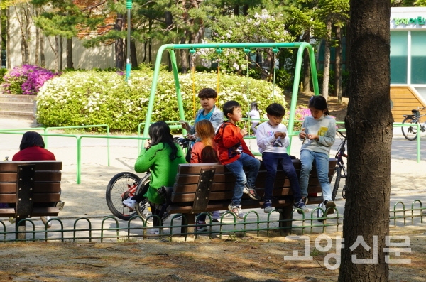 문화공원 놀이터에서 만난 D군(9살)은 친구들과 축구시합이 한창이다. 학교에 가지 않는 날이 길어지며, 공원에서 친구들과 노는 시간이 많아졌다. 가장 재밌는 건 역시 축구다. 전에는 한 팀에 다섯 명 먹기도 힘들었는데, 요새는 동네 형들과 동생들까지, 열한 명을 꽉 채워서 시합을 한 적도 있다. 아이들이 뛰어노는 동안 엄마들은 벤치에 앉아 이야기를 나눈다.