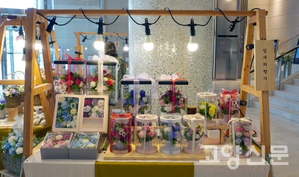 [고양신문] 고양시사회적경제기업협의회가 주최하는 제품 판매전이 롯데백화점 일산점 1층 로비에서 열리고 있다. ‘코로나19를 이겨내는 슬기로운 고양생활’이라는 주제로 열리는 이번 행사는 1일부터 시작해 오는 14일까지 2주간 진행된다.