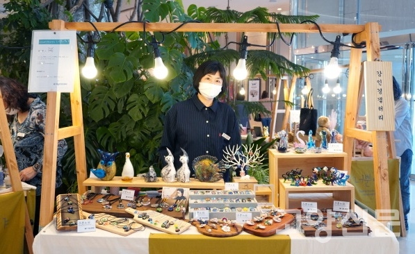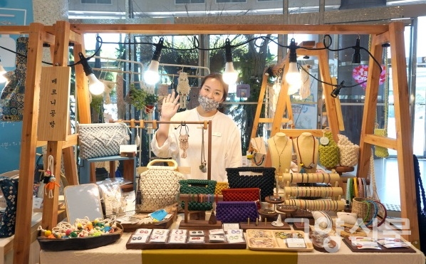롯데백화점 일산점 1층 입구에 들어서면 12개 사회기업이 마련한 판매 부스들이 고객을 맞는다. 아름다운 디자인과 높은 가성비를 겸한 다양한 수제품들을 만날 수 있는 이번 행사는 5월 가정의 달을 맞아 기획된 만큼 사랑하는 사람, 고마운 사람에게 마음을 전하기에 안성맞춤인 제품들이 매대마다 가득하다.