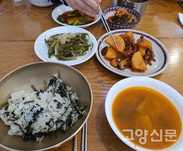 안성쌀과 송포쌀로 즉석에서 갓 지어내는 찰진 밥맛은 여느 식당의 밥보다 더 꼬들꼬들하다. 기자가 방문한 날은 신천초 나물밥과 소고기뭇국에 4가지 반찬이 나왔다. 언뜻 보기에는 곤드레나물밥과 비슷한데 향과 영양가가 더 좋다고 한다. 간장 양념을 넣어 비벼 먹는 밥이 별미다. 한우로 육수를 낸 국은 얼큰하고 시원하다. 이날 맛본 오이김치는 토마토로 단맛을 내서 건강한 맛이 났다. 감자조림과 같이 나온 한우 조림에도 젓가락이 자주 간다.