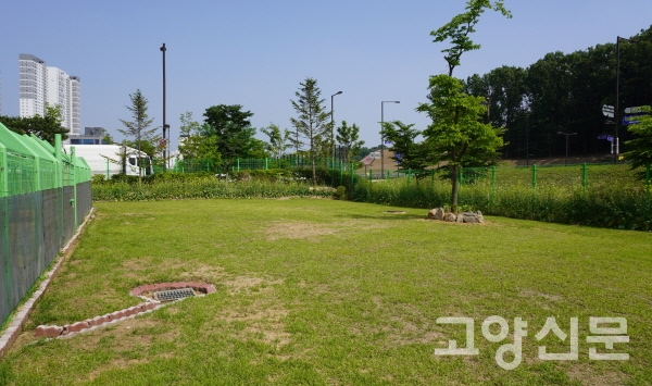 [고양신문] 고양시농업기술센터에 자리한 고양시동물보호센터 뒷마당에 소박한 반려견 쉼터가 만들어졌다. 새로 마련된 반려견 쉼터는 80여 평 넓이로 잔디밭을 중심으로 화초를 심은 정원이 둘러져 애견인과 반려견이 함께 편안한 시간을 보낼 수 있도록 꾸몄다.