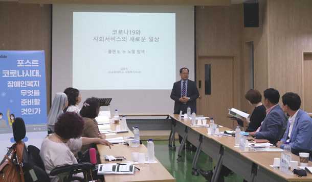기조 발제를 맡은 김용득 교수는 코로나19로 ‘거리 두기’를 시행함에 따라 각 기관 및 시설에서는 장기간 휴관에 돌입하거나 면회, 외출 등을 금지시켰고, 이로 인해 장애인들에게 고립과 위험을 초래하는 문제점을 제기했다.