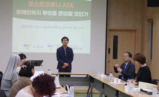 고양시와 고양시장애인종합복지관이 공동주최한 '포스트 코로나 시대, 장애인 복지 무엇을 준비할 것인가' 토론회가 3일 열렸다. 고양시장애인종합복지관에서 개최된 이날 토론회는 생활 속 거리두기 지침에 따라 무청중 토론회로 진행했으며, 유튜브 채널 ‘고양장복’ 실시간방송을 통해 고양시 내 각 기관과 열띤 토론 분위기를 이어갔다.