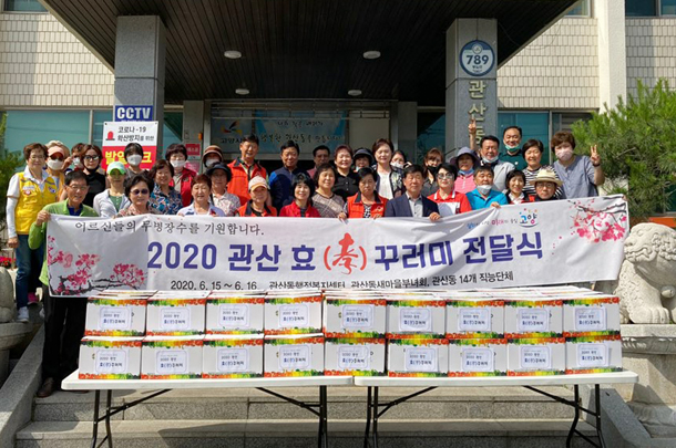 윤희선 관산동장은 “코로나19가 장기화되면서 ‘생활 속 거리두기’에 따른 생활 방역이 강조되는 등 답답한 일상을 보내고 계셨을 텐데 잘 견뎌 주셔서 감사드린다. 늘 건강하고 행복하게 지내시길 바란다”라고 말했다.