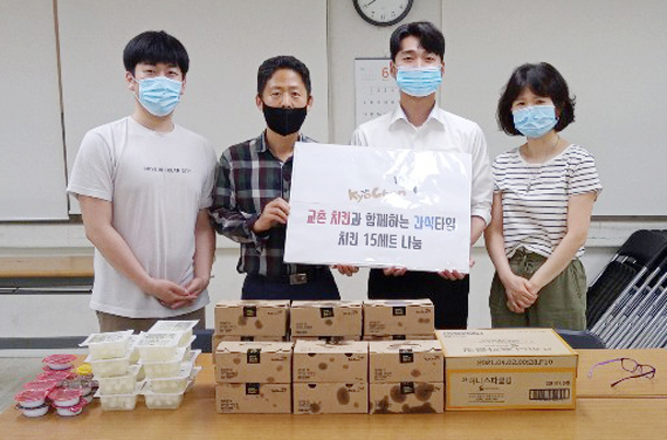 지난 6월 25일(목) 고양시문촌9종합사회복지관 능곡센터에서는 고양시사회복지협의회와 교촌 F&B가 함께하는 간식타임 프로그램에 선정되어 치킨 15마리를 후원<사진>받았다.
