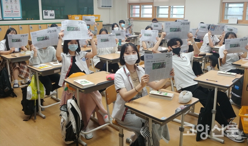 [고양신문] 십대 청소년들이 종이신문을 한 부씩 펼쳐 읽고 있다. 건성건성 페이지만 들추는 게 아니다. 각 면마다 큰 제목과 부제목을 읽고 사진에도 눈길을 준 다음, 관심이 가는 기사를 골라 내용을 꼼꼼히 읽는다. 낯선 경험이지만, 의외로 재미있는 기사가 많다. 무엇보다도 내가 살고 있는 지역의 소식을 신문기사로 읽는다는 게 무척 흥미진진하다. 24일 오전, 일산서구에 자리한 대화고등학교 2학년 교실에서 진행된 사회문제탐구 과목 ‘고양신문으로 지역사회 들여다보기’ 수업 풍경이다.