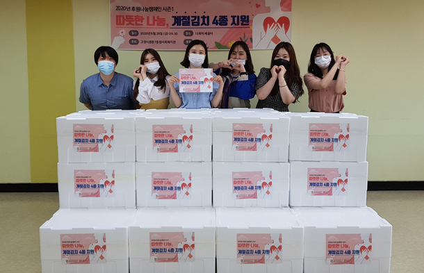 고양시문촌7종합사회복지관(관장 윤영)은 ‘후원나눔 캠페인’을 통해 모금된 후원금으로 지난 26일(금), 지역 내 저소득 장애인·어르신 가정 25세대에 계절김치 4종을 전달했다. 이번 ‘후원 나눔 캠페인’은 지역 내 경제적 어려움으로 식생활이 열악한 저소득 가정의 건강한 일상 지원을 위해 3월 1일부터 5월 31일까지 진행됐고, 총 931명의 네티즌과 지역 내 익명 기부자와 기업체의 후원으로 성황리에 모금을 마쳤다.