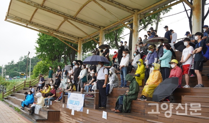 고양시가 야심차게 추진하고 있는 ‘고양 희망알바6000, 드림하천 가꾸기’ 사업에 시동이 걸렸다. 20일 오전 관산동 공릉천 둔치 체육공원, 드림하천 가꾸기 사업 첫날 일정은 향후 작업에 대한 오리엔테이션이다. 빗방울이 흩날리는 궂은 날씨에도 150여 명의 희망알바 참가자들이 인솔자의 설명에 귀를 기울인다. 마이크를 잡은 이는 이번 사업의 공릉천수계 전문책임관 임무를 맡게 된 권해원 고양환경단체협의회 대표다. 권 대표는 오랫동안 공릉천 환경과 생태 지킴이 역할을 해 온 전문가답게 생태하천의 중요성, 공릉천에 대한 기초지식, 그리고 참가자들이 해야 할 작업에 대해 일목요연한 설명을 이어갔다.