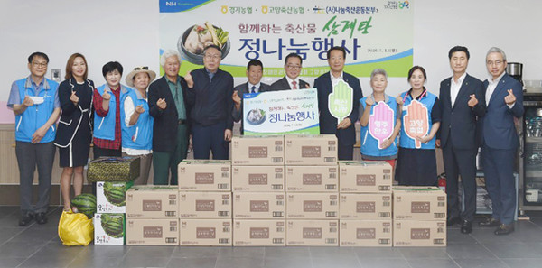 고양시 소규모노인종합센터와 장애인권익지원협회 고양시지부에 삼계탕과 한우 국거리 등 400만원 상당의 축산물 전달이 13일 있었다. 고양축협과 경기농협지역본부, 나눔축산운동본부 경기도지회 등이 함께 나눔의 뜻을 모아 ‘축산물 정 나눔행사’를 가진 것이다.