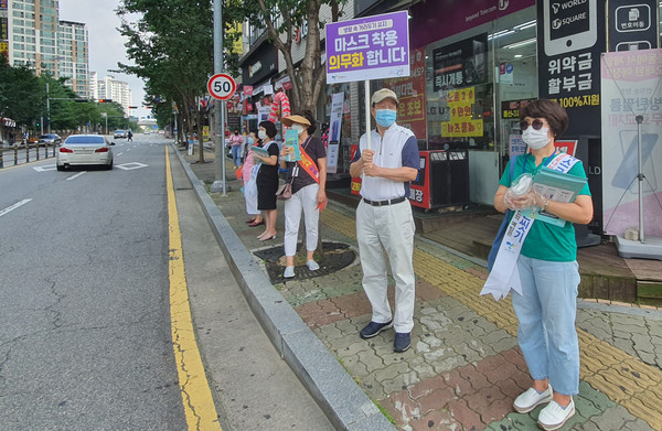 풍산동 통장협의회는 오는 8월 24일~26일에도 3일간 관내 풍동사거리에서 올바른 마스크쓰기 캠페인을 펼친다.