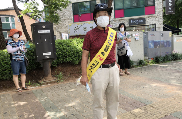 풍산동 통장협의회가 ‘올바른 마스크쓰기 범 시민 홍보활동’으로 지난 18일 오전 11시부터 풍동 사거리 일대와 상가 등지에서 마스크 착용 캠페인을 펼쳤다. 이날은 사회적 거리두기 2단계 격상에 따른 홍보캠페인으로 한한종 풍산동 통장협의장과 회원, 풍산동직원, 정영안 일산동구청장, 이기문 일산동구 자치행정과장 등 25명이 참석해 활동을 했다. 참석자들은 마스크 미착용 시민을 대상으로 마스크 배부와 올바른 마스크 착용법을 안내했으며, 코로나19방지 전단지와 향균 물티슈도 배부했다. 이번 캠페인에서는 참석자들은 시민들을 위해 자기방역을 철저히 했고, 자발적인 사회적거리로 안전을 거듭 확인하며 적극적으로 캠페인을 펼쳤다.