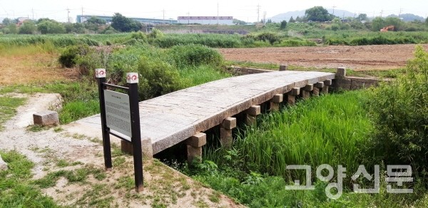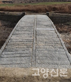 [고양신문] 고양시에 남아있는 가장 오래된 다리인 ‘고양 강매석교(高陽 江梅石橋)’가 지난 8월 26일 경기도 유형문화재에 이름을 올렸다. 그동안 고양시 향토문화재로 관리되다가 이번에 경기도 유형문화재 제362호로 새롭게 지정된 ‘고양 강매석교’는 고양시 덕양구 강매동 강고산마을 창릉천변에 있으며 전체길이 17.74m, 최고 높이 2.48m, 최대폭 3.57m 크기다. 네모진 돌기둥 24개로 교각을 만들어 세우고 그 위에 장방형의 교판석 110개를 2열로 깔아놓았다.