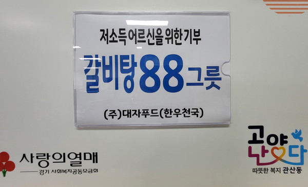 덕양구 관산동(동장 성운현) 통장협의회(회장 이선)에서는 지역내 어르신들을 대상으로 지난 2일 ‘사랑의 갈비탕 나눔’ 봉사활동을 가졌다. 관내 업체인 ‘한우천국(대표 강정혜)’은 매년 지역 어르신들을 초대해 사랑의 갈비탕 나눔 봉사를 해왔으나, 올해는 코로나19 확산으로 어르신들이 각자 편안한 시간에 식당에 방문할 수 있도록 갈비탕 쿠폰 60장으로 전달했다. 또한 저소득 어르신 88명에게는 포장된 갈비탕을 전달했고, 통장협의회가 각 가정에 직접 방문해 전달했다.