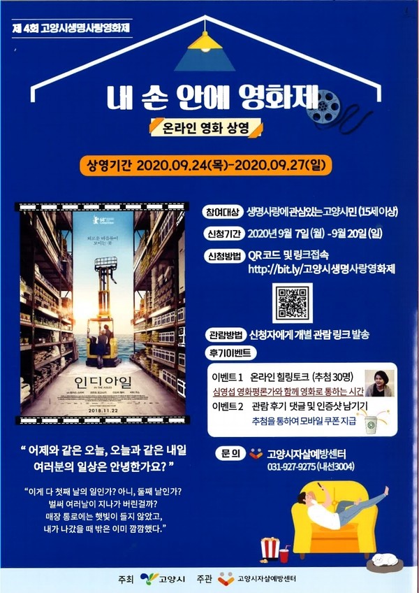 [고양신문] 고양시자살예방센터가 생명사랑영화제 ‘내 손 안에 영화제’를 온라인으로 개최한디.