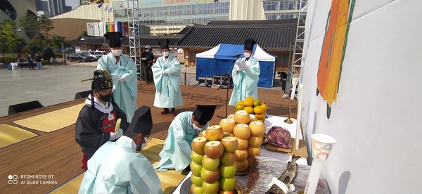 행사를 주관한 정운란 한국민속문화협회장은 “코로나19로 인해 비대면으로 제천례를 봉행하게 되어 아쉬운 마음이 크지만 추석연휴에도 불구하고 행사에 참여해주신 헌관님들과 고양향교 장의님들 그리고 행사를 지원해주신 고양시와 고양문화원측에 감사드린다”며 “제천례 봉행을 통해 우리 민족의 뿌리와 전통문화를 다시 한 번 되새기는 계기가 되고, 국조단군의 건국이념인 홍익인간·이화세계가 실현되어 우리 대한민국이 세계 역사의 무대에 당당한 주인공이 되기를 기원한다.”고 말했다.