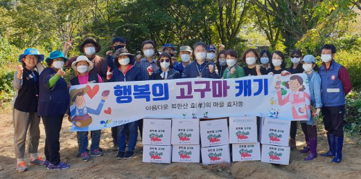 지난 8일 덕양구 효자동 주민자치위원회(위원장 최희례)가 주관해 지역내 어려운 이웃들에게 전달할 ‘행복의 고구마 캐기’를 했다. 이날은 주민자치위원회와 통장협의회(회장 이승기), 지역사회보장협의체(위원장 박정준), 새마을지도자회(회장 이규열), 새마을부녀회(회장 최현숙) 등 직능단체 회원들이 25여명이 참석해 봄부터 정성껏 가꾼 고구마를 수확했다. 수확한 고구마는 관내 어려운 이웃 10가구에 안부 확인과 함께 전달할 예정이다.