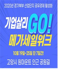 [고양신문] ㈔고양시기업경제인연합회(회장 이상헌)는 도내 중소기업 판로개척을 지원하고 경제 활성화를 위한 경기북부 산업단지 공유경제 활성화 사업인 ‘2020년 경기북부 메가세일위크’를 오는 10월 19일부터 25일까지 7일간 원마운트 인근 공원길에서 개최한다.