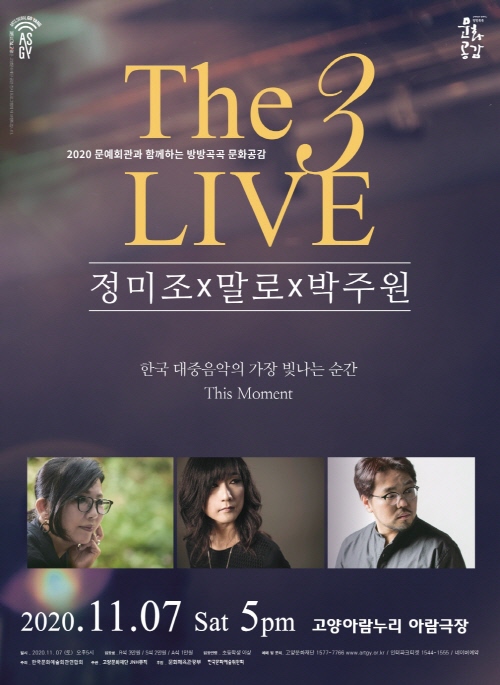▲핫한 기대를 모으는 무대는 7일 가요의 전설과 한국 최고 재즈 뮤지션들이 만난 ‘정미조X말로X박주원-The3 LIVE’다. 1970년대 최고의 디바로 최근 성공적으로 컴백한 정미조의 기품 넘치는 무대, 한국 재즈 보컬의 정점이라 평가받고 있는 말로의 신들린 스캣, 집시 기타의 히어로 박주원의 불꽃같은 기타 속주가 어우러진 특별한 라이브 공연을 준비하고 있다.