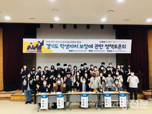 도의회는 지난 29일 고양미래인재교육센터에서 '경기도 학생자치 보장에 관한 정책토론회'를 개최됐다. ‘2020 경기도 하반기 경기도-경기도의회 정책토론 대축제’의 일환으로 열린 이날 토론회는 비대면 중심 토론으로 진행된 가운데 온오프라인을 통해 모인 학생대표, 학생자치담당교사, 학부모, 연구자 등 120여 명이 참여한 가운데 코로나19 방역지침을 준수하며 진행됐다.