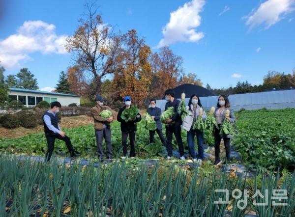 올해 유난히 긴 장마와 태풍 속에서도 학생과 교수진들이 잘 보살피며 키워냈고, 이곳 500여 평에는 배추와 무가 각각 1000포기씩 튼실하게 자라났다. 이날 행사 후 남은 배추는 벽제농협 로컬푸드 직매장에서 판매돼 산학협력 상생으로 이어졌다.