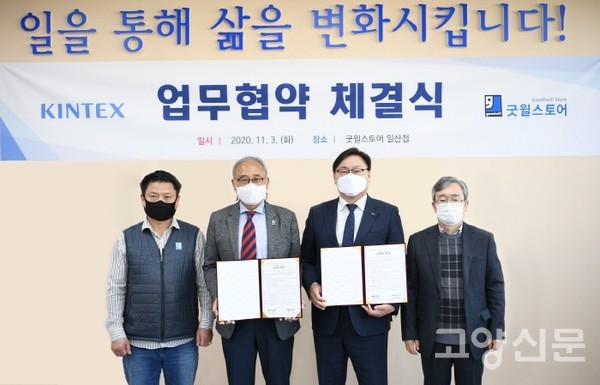 [고양신문] 킨텍스(대표이사 이화영)와 밀알복지재단 굿윌본부(본부장 한상욱)가 3일 지역 내 장애인 일자리 창출 및 기업 사회적 책임 강화를 위한 업무협약(MOU)을 체결했다. 협약식에는 킨텍스 이화영 대표이사와 한상욱 밀알복지재단 굿윌본부장을 비롯해 양사 관계자들이 참석했다. 이 자리에서 킨텍스는 굿윌스토어의 지속가능한 공유가치에 공감을 표하며, 장애인 일자리 창출과 환경보호에 동참하기 위한 협력을 약속했다.