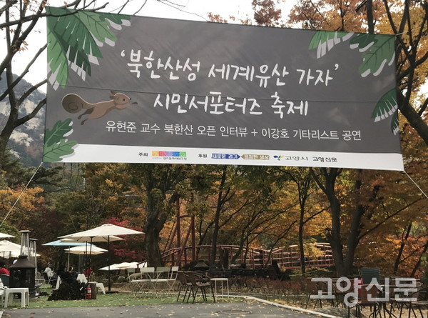 [고양신문] 경기도와 고양시의 소중한 역사 유산인 북한산성의 유네스코 세계유산 등재를 응원하는 시민서포터즈 축제가 지난달 31일 ‘북한산성 세계유산 가자’라는 슬로건을 내걸고 열렸다. 경기문화재단이 주최하고 경기도와 고양시, 고양신문이 후원한 이날 축제에는 고양시민은 물론 서울과 남양주, 부천 등 타 지역에서 온 참가자들도 자리를 함께 하며 북한산성의 세계유산 등재를 한 목소리로 기원했다.