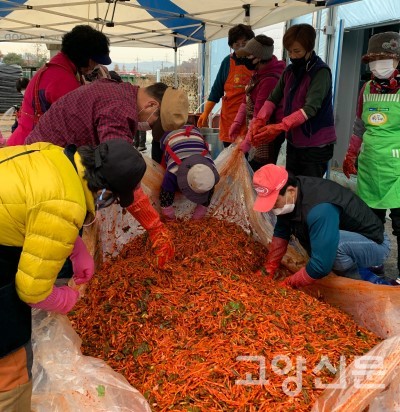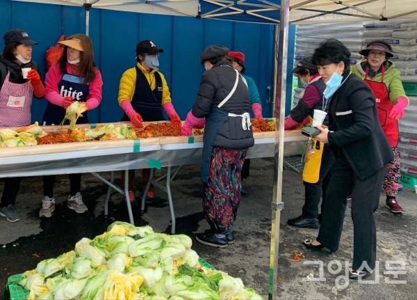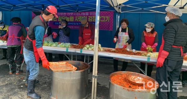 [고양신문] 원당농협(조합장 강효희)은 지난 5~6일 이틀 동안 직접 재배한 배추로 원로청년회(회장 장석영), 고향주모(회장 정명희), 농가주모(회장 조옥분), 채움봉사단(단장 이옥희)을 비롯해 이사, 감사 등이 모두 모여 어려운 이들에게 전할 김장행사를 진행했다.