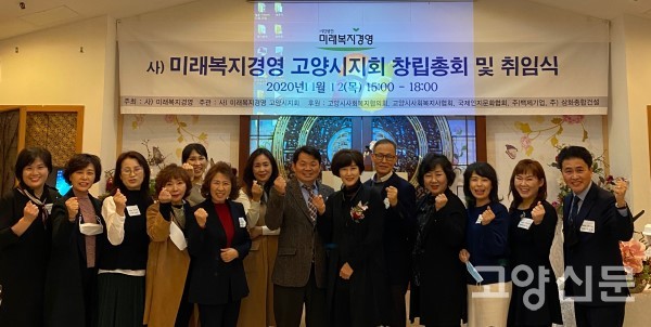 [고양신문] ㈔미래복지경영 고양시지회(지회장 최호정) 창립총회 및 취임식이 12일 열렸다. 주엽동 소메르뷔페에서 열린 이날 행사는 코로나19 방역을 준수하며 진행됐다.